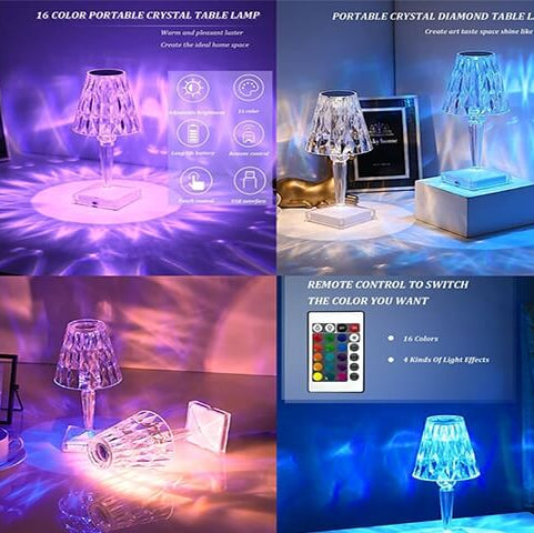 Portable Crystal Diamond Table Lamp with Touch Sensor, different Colours Remote Control, Rechargeable Lamp, Acrylic Crystal Bedside Lamp, Night Light for Kids, Room Decoration, Desk Lamp, Kitchen, Dining Room Lamp