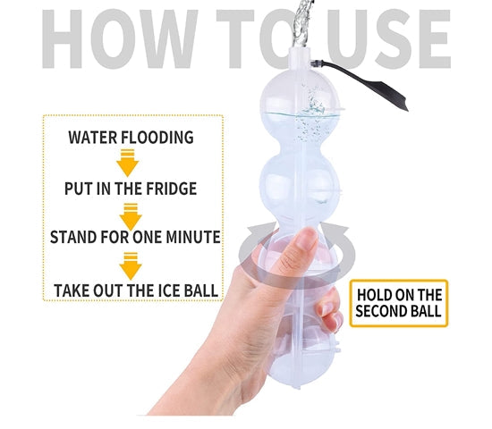 Tips:When injecting water, hold on the second ball with your hand. Fill only 3 hemispheres, Immediately place the ice ball mold flat in the freezer.